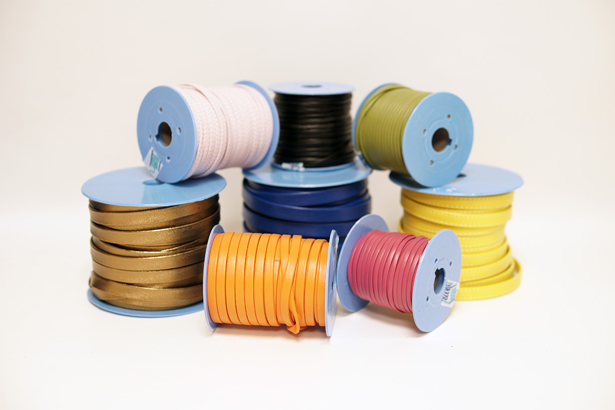 Actualmente, en Eugenio Gabarró somos capaces de producir cualquier color en cordón de cuero redondo desde 1mm hasta 10mm de diámetro, en una amplia variedad de acabados. Podemos fabricar todo tipo de piel cortada: plana, trenzada, cosida y también productos adaptados a las necesidades de nuestros clientes.